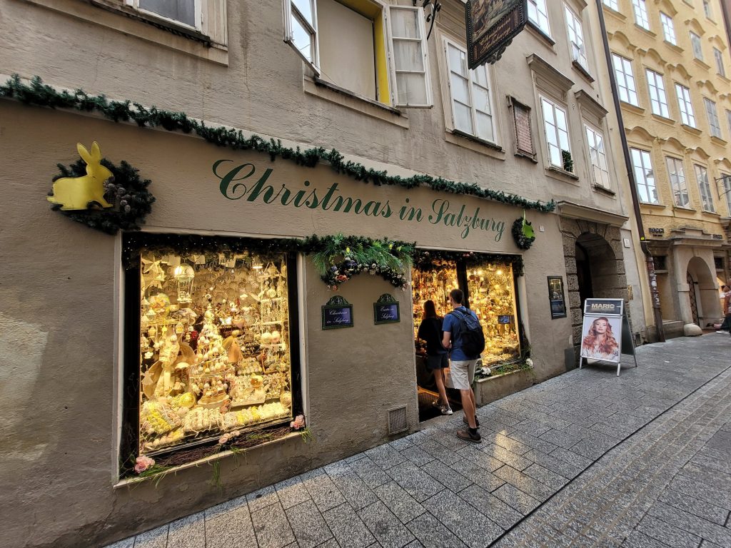 Mozarts hemCykla försiktigt.KärleksbronHär ska vi äta lunch.Ett till av Mozarts hem, hans födeleplats. Bara påsk å jul pynt. PåskpyntJulpyntMozart i egen hög personEn bra fotografTill borgen tog vi en linbana. Det var skönt att slippa gå dit upp. Utsikt från borgenLite mer utsikt. KanonutsiktEtt hus i bergetEn av alla kyrkor. Det finns så mycket kyrkor i Salzburg. Klockstaplarna låter om vartannat. Häftigt ansikteTillbaka till Mirabellpalatset å dess trädgård.Spelar lite för fiskar å sköldpaddorPå väg till campingen efter en heldag på stan.