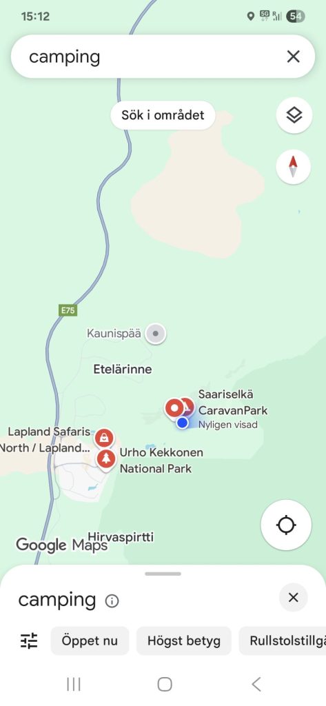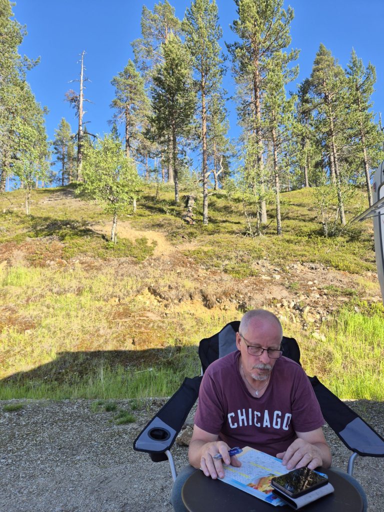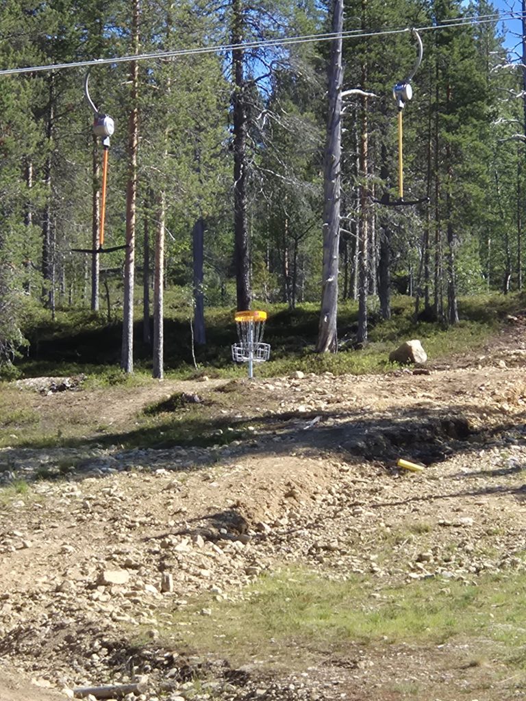 Två nätter i Saariselkä. Här har dom en diskgolfbana i skidanläggningen. Lite mindre graderhär mot Rovaniemi bara 25 grader ute och 30 grader i husbilen. Tog en promenad till centrum. Vi fortsatte promenaden upp till toppen. Det tog sin lilla tid. Där vart det kaffe å sockerkaka. Jag har säkert fått hundra mygg/bromsbett. Tur att det finns xylocain.