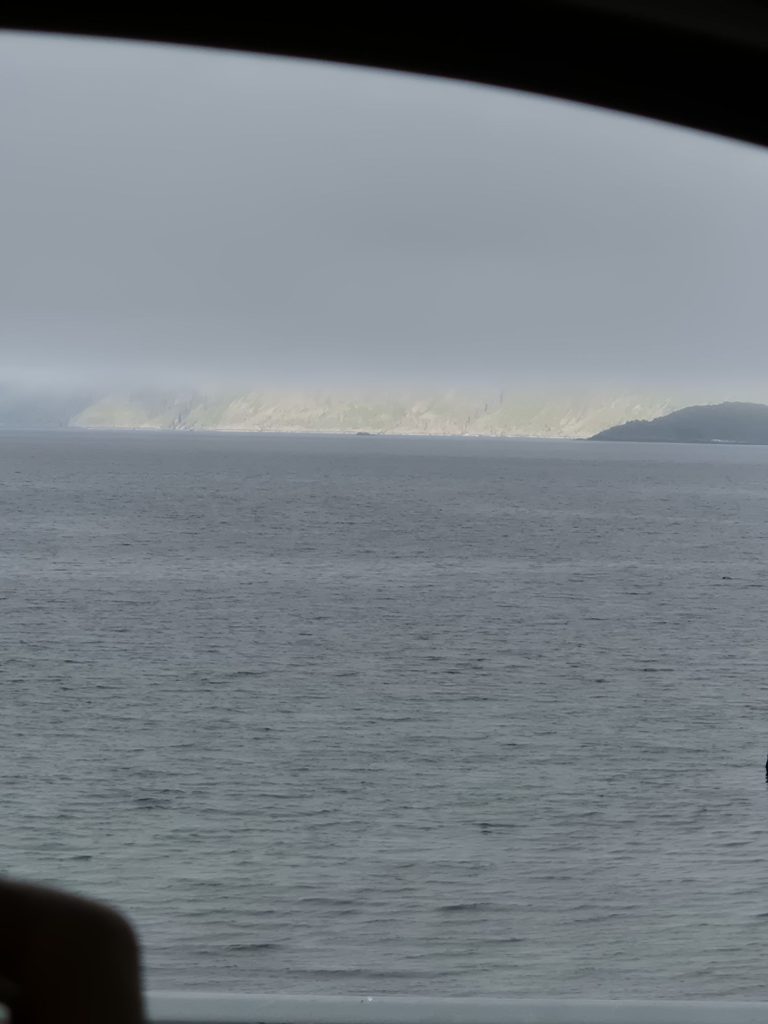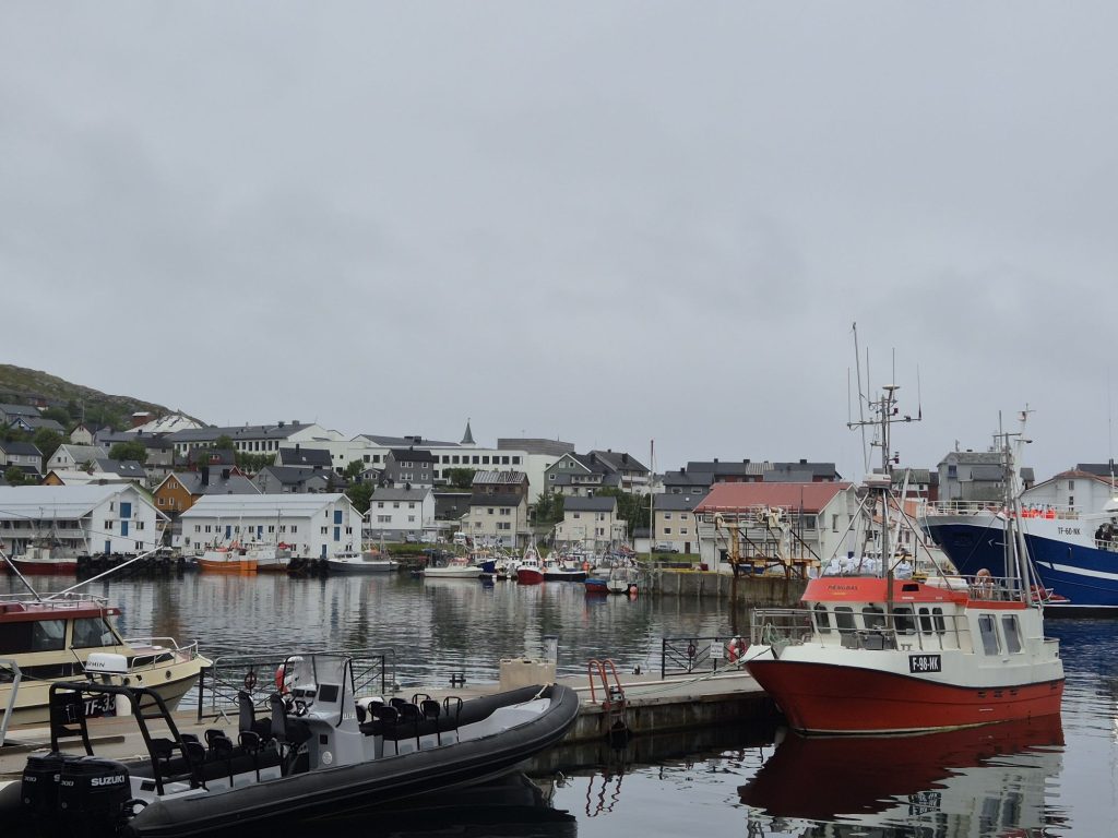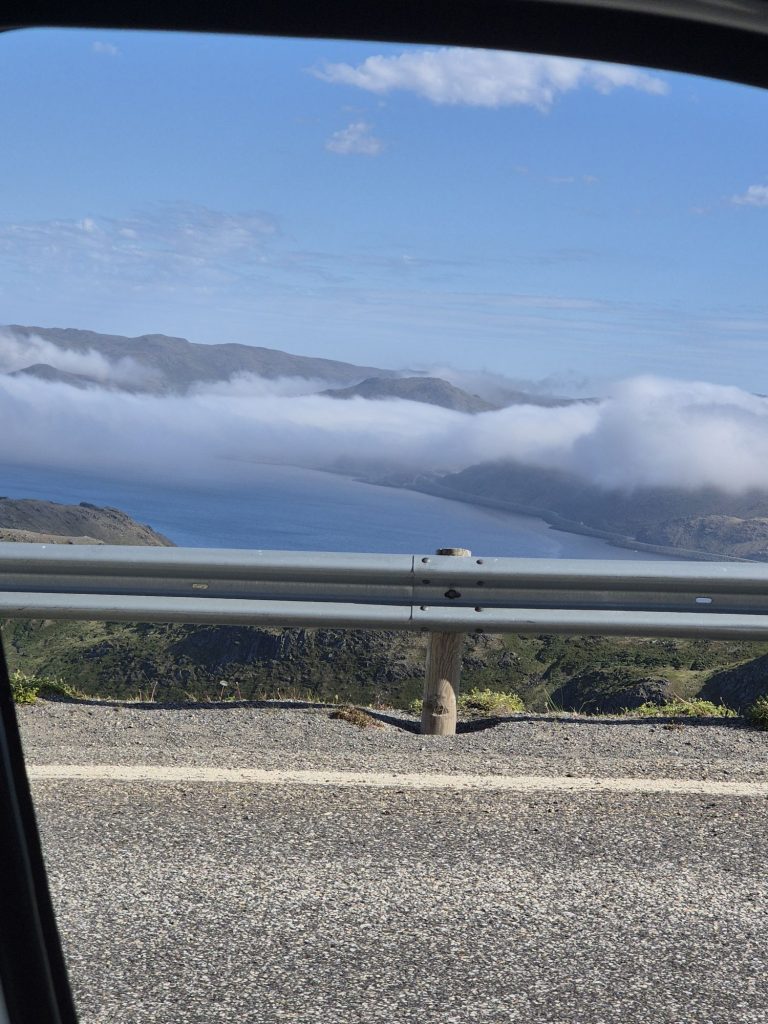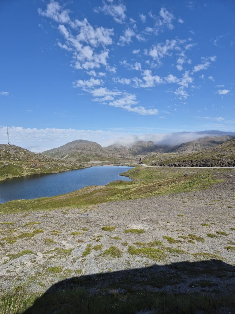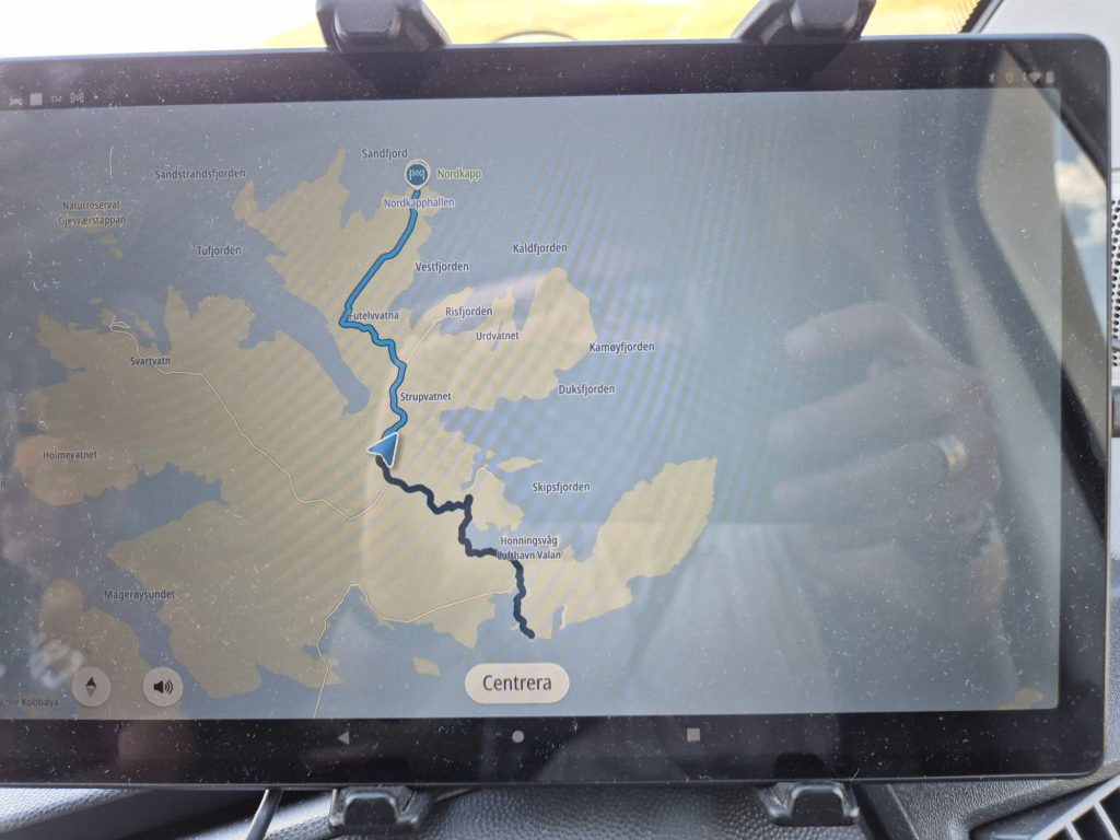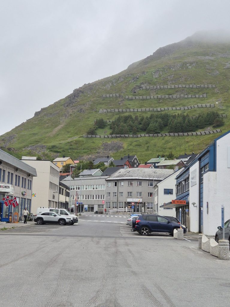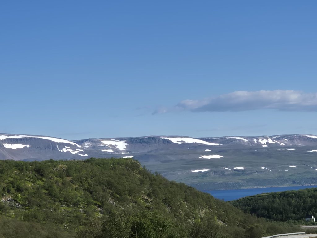 Vi körde ner till Honningsvåg å sov där på en dtällplats. Så ett fantastiskt fint sken mot bergen.