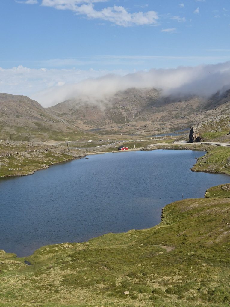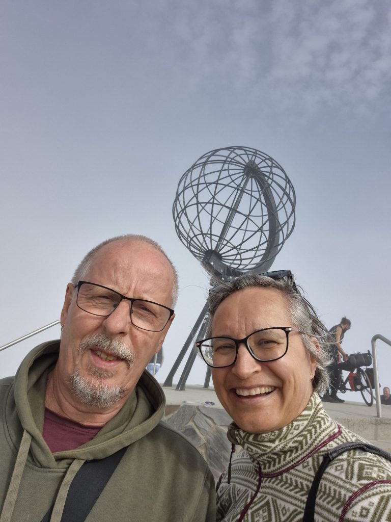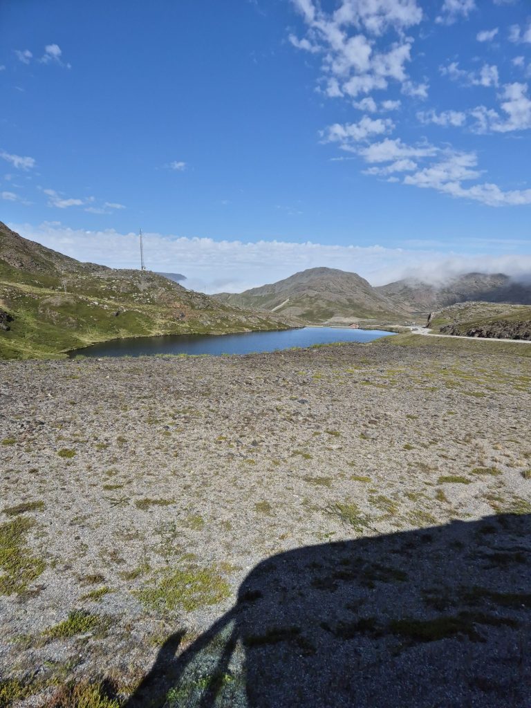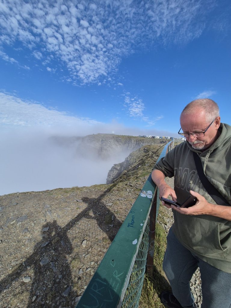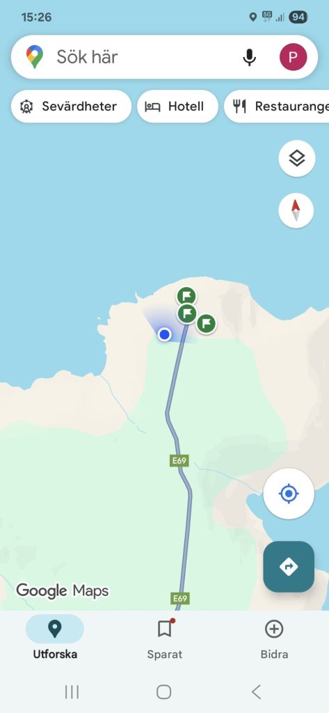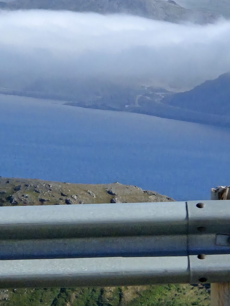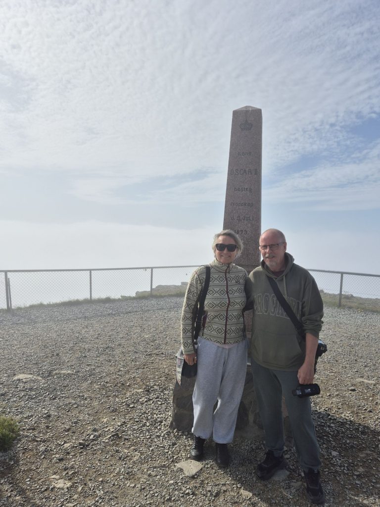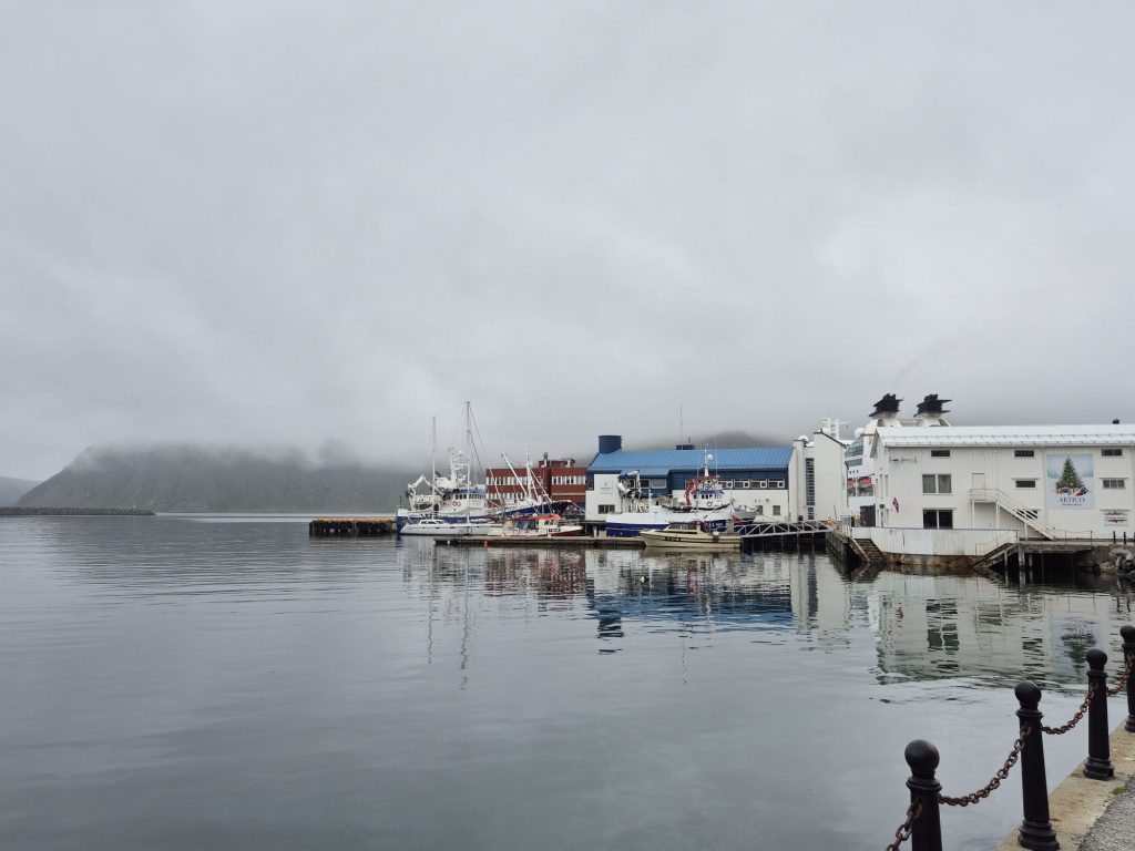 Vi körde ner till Honningsvåg å sov där på en dtällplats. Så ett fantastiskt fint sken mot bergen.