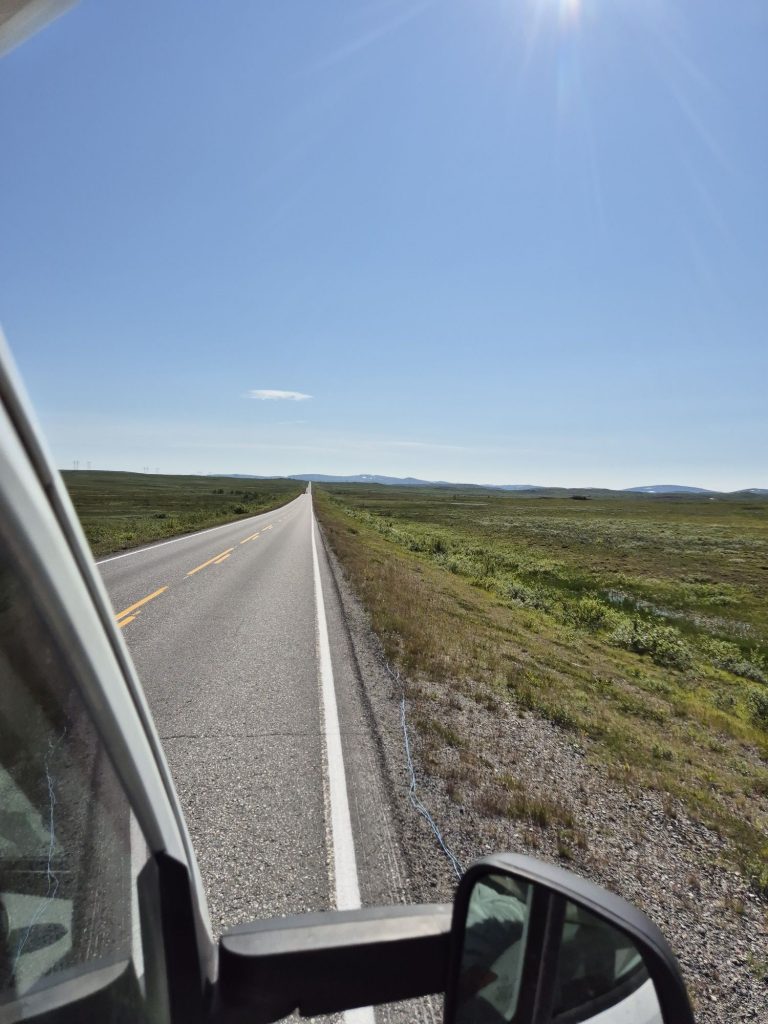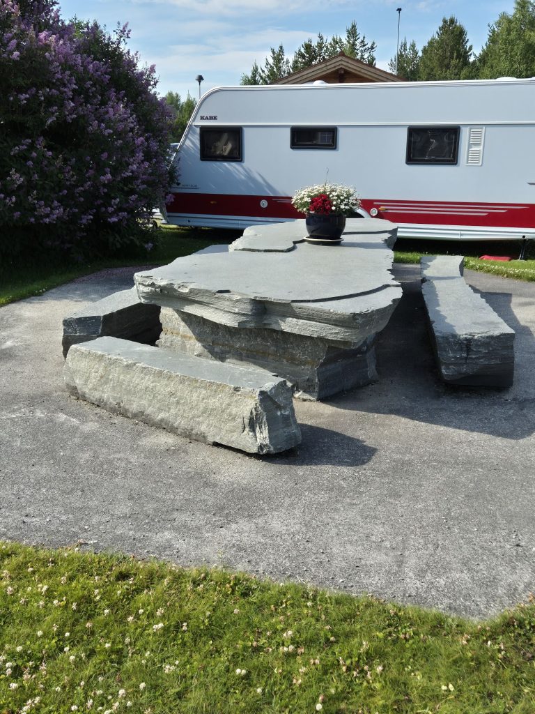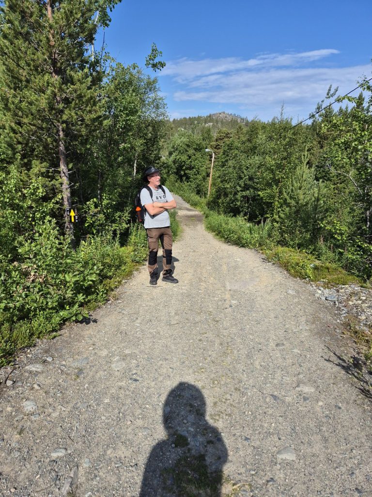 Gick en annan väg tillbaka till campingen. Vi gick på E45. Det fanns ingen annan väg att gå. Helt slut när vi kom tillbaka. Jag gick och vilade. Vi hade 36 grader i husbilen, tur att vi har AC.