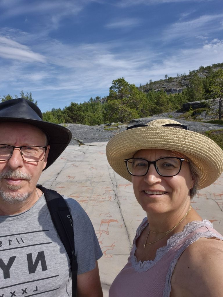 Vi tar en nätt promenad på 6.5 km genom skogen till ett museum som har världsarvet hellristningar i Alta.