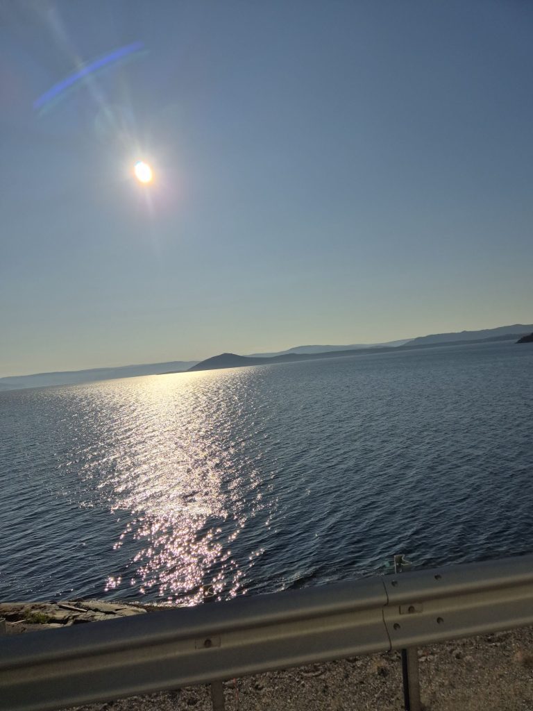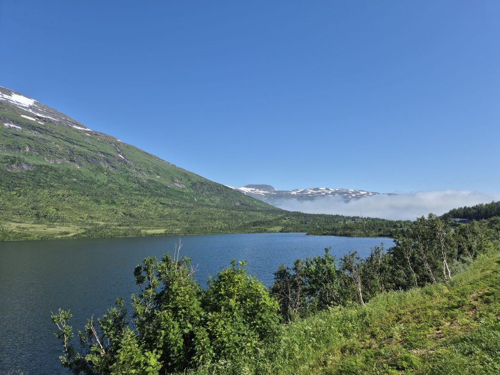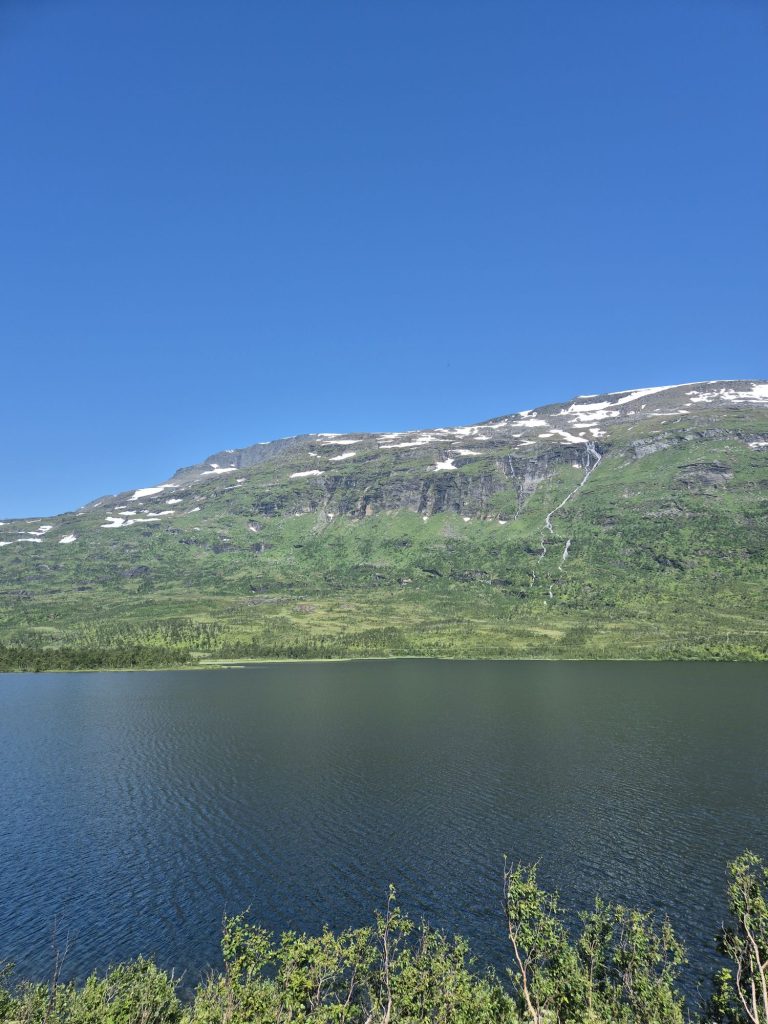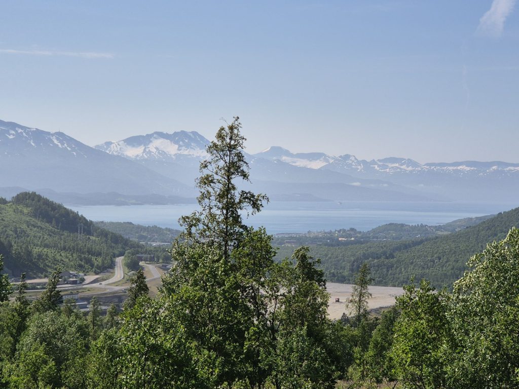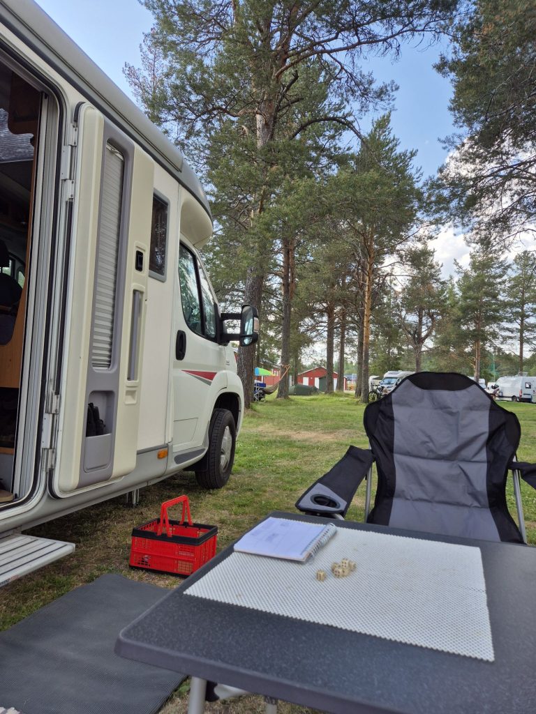 Gick en annan väg tillbaka till campingen. Vi gick på E45. Det fanns ingen annan väg att gå. Helt slut när vi kom tillbaka. Jag gick och vilade. Vi hade 36 grader i husbilen, tur att vi har AC.