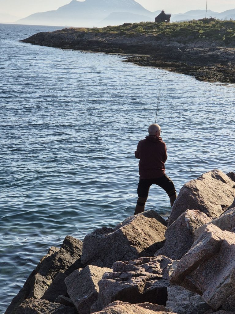 Vi tog en till tur på sjön för att fiska. Vi fick 5 stora fiskar, torsk, sej å långa. Roffes sej vägde runt 5 kg. Superfin. Vi såg även en lunnefågel.