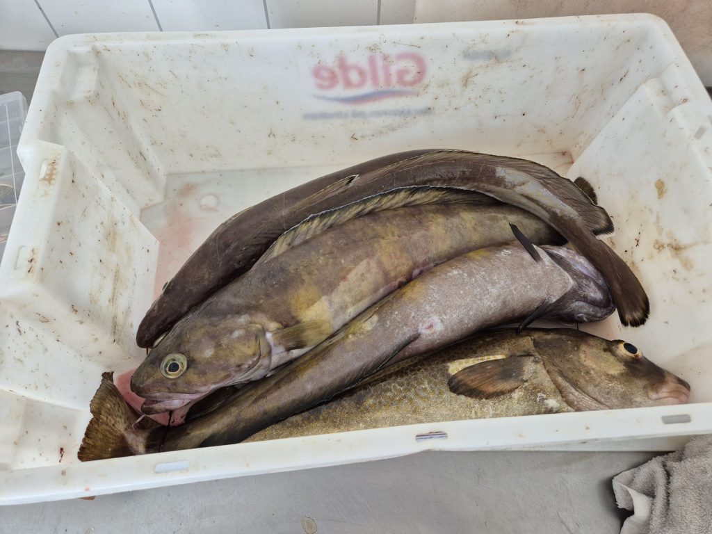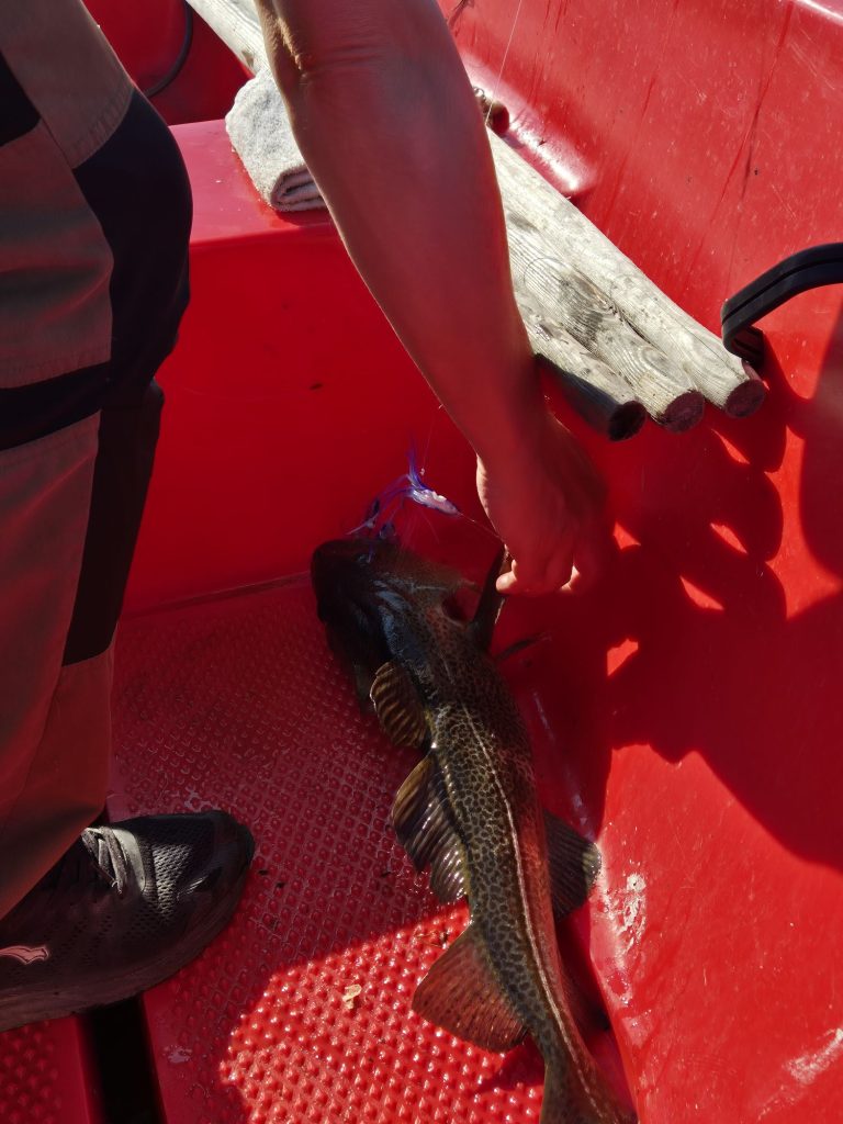 Jippeeeeee vi har fått fisk. Torsk, långa och lubb. Vi såg även små valar, troligtvis tumlare.
